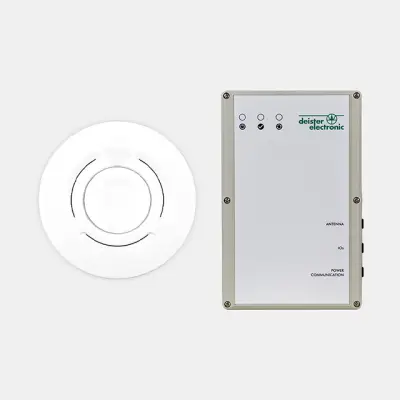 amanTag® consists of two main components: UHF RFID locators and semi-active transponders. The locators establish surveillance zones, for example at doors that are to be monitored.